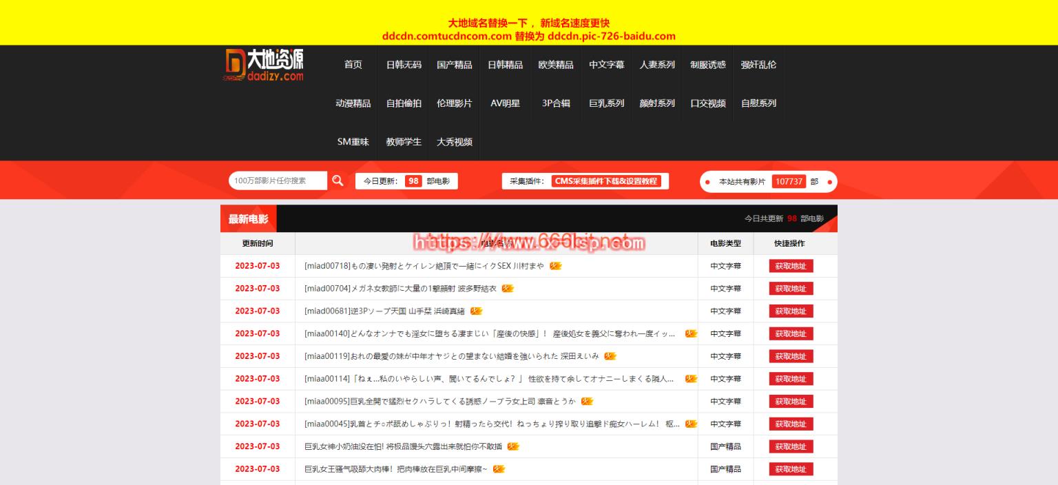 摘要:资源类型 成人视频 采集奖励 暂无 免费模板 暂无 官方演示站 暂无 官方网站 http://dadizy.com 官方交流群 暂无